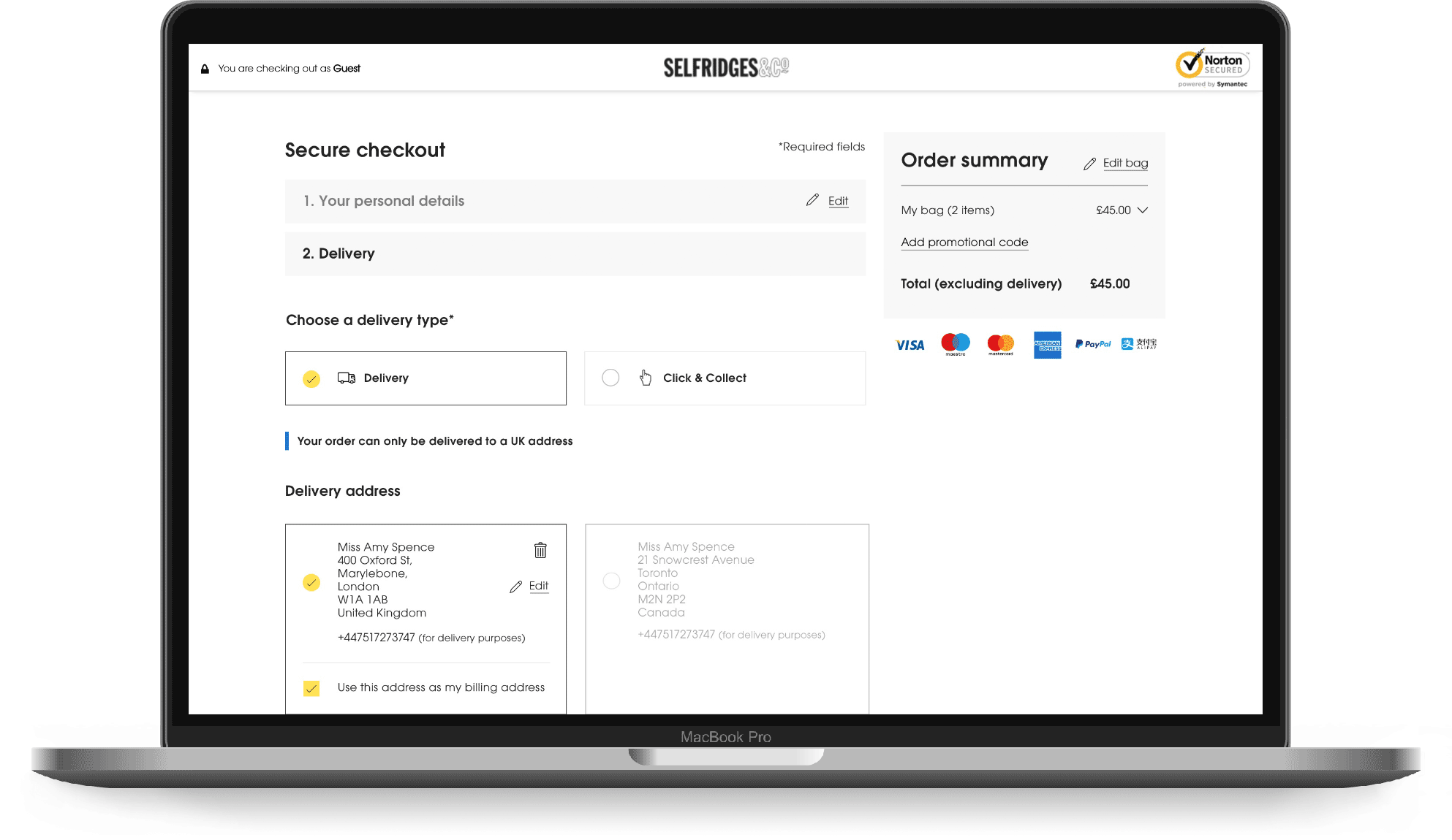 Selfridges’ customer base is highly international. The new design allowed all customers the ability to shop in their local currency, as well as a transparent view of local taxes and duties and any delivery restrictions at all stages of the checkout process