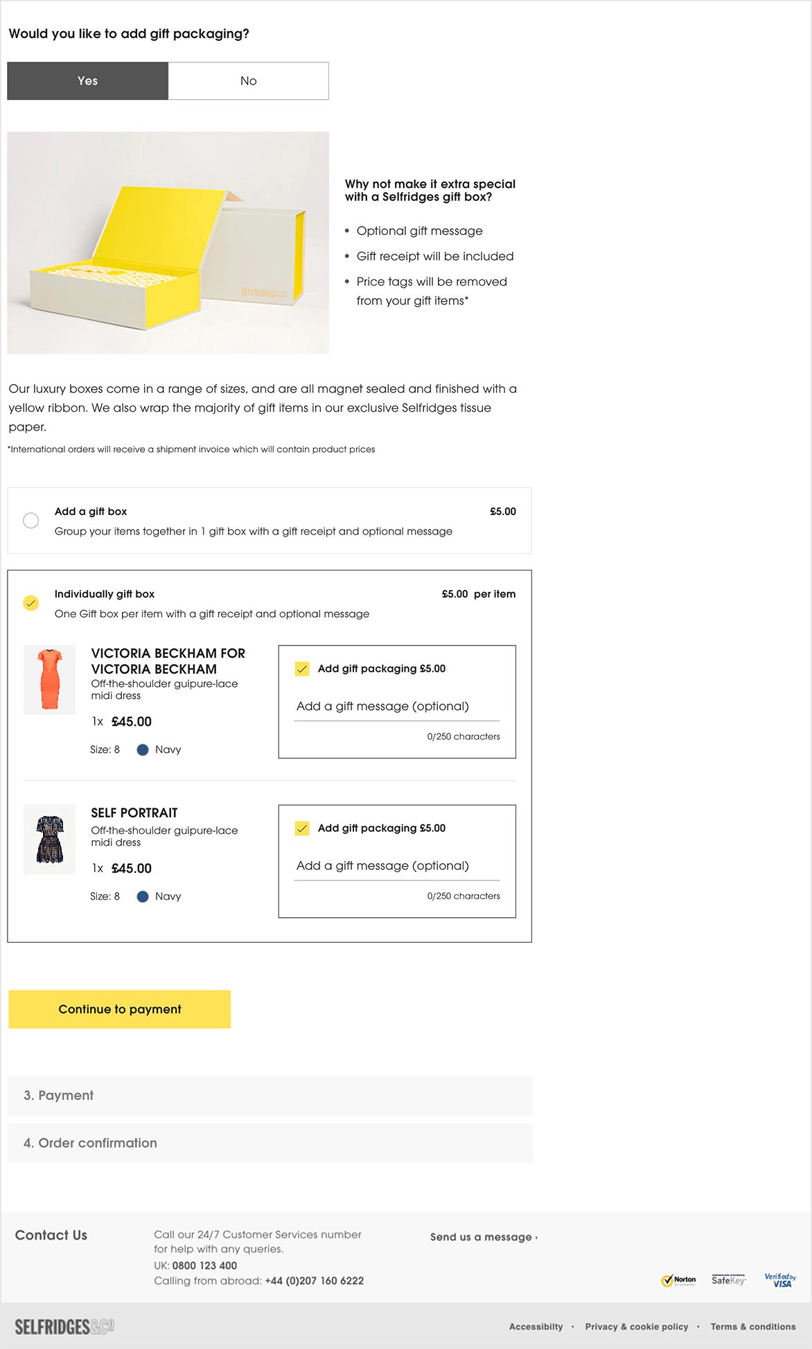 Selfridges sells luxury items that are often purchased as gifts. The new design allowed customers to choose between a single gift box for their order or gift wrapping for each item individually, as well as allowing them to add a gift message.