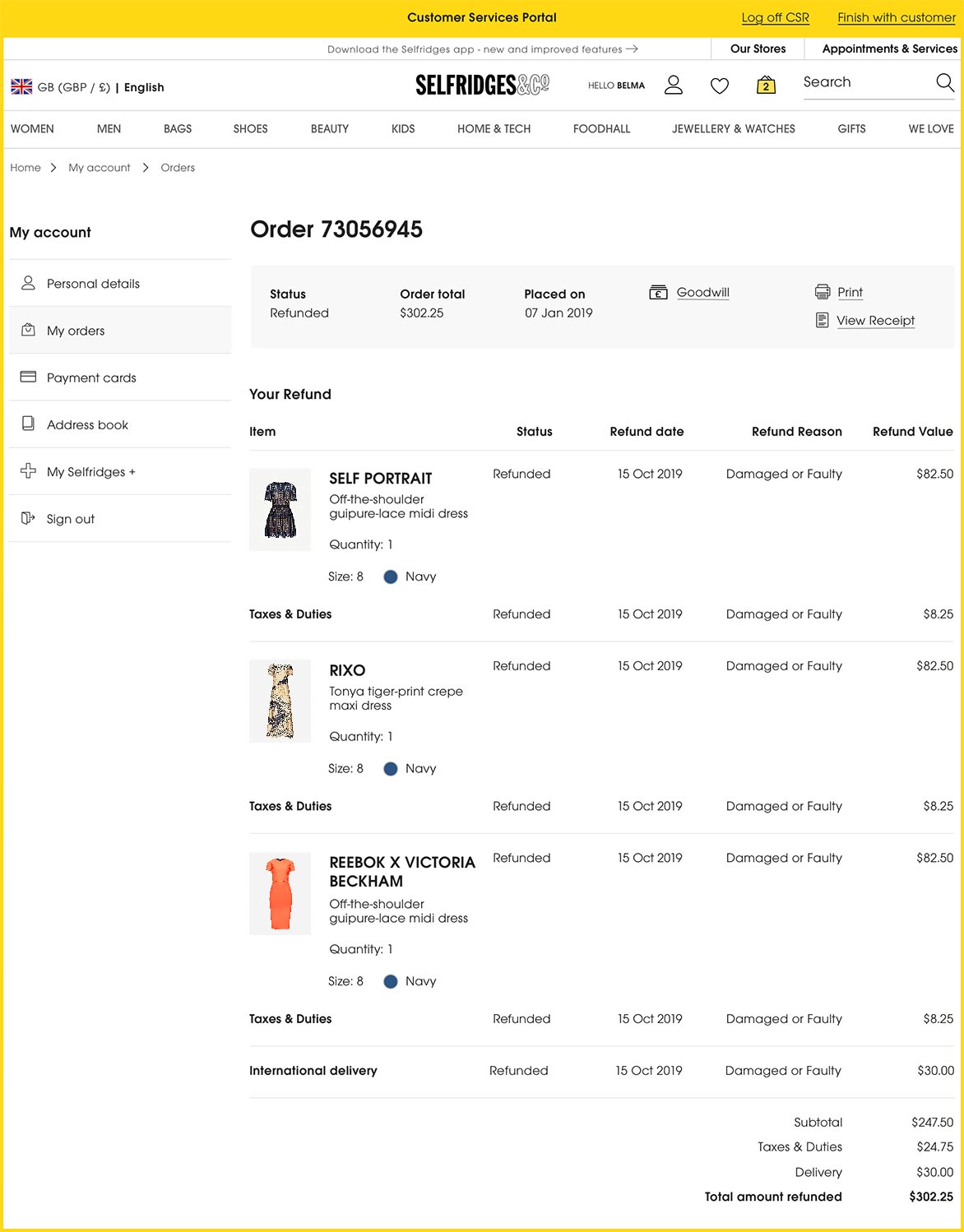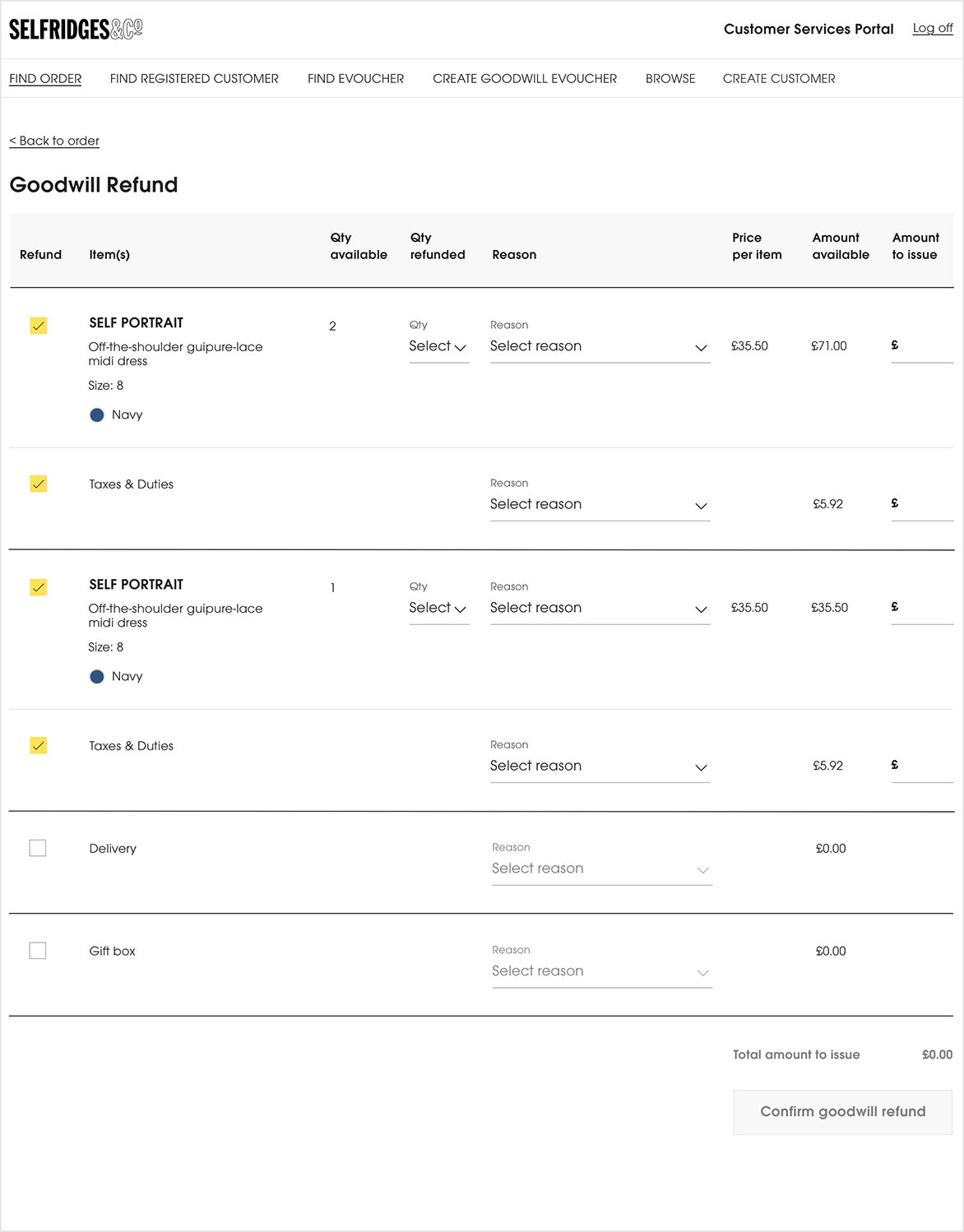 I was one of two designers working on a re-platform & re-design of the Selfridges Checkout and My Account site areas, transactional emails and an internal portal for the Customer Services team.